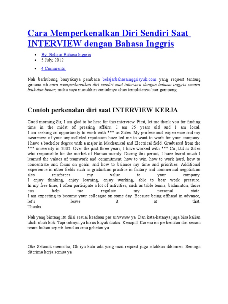 Cara Memperkenalkan Diri Sendiri Saat Interview Dengan Bahasa Inggris Pdf